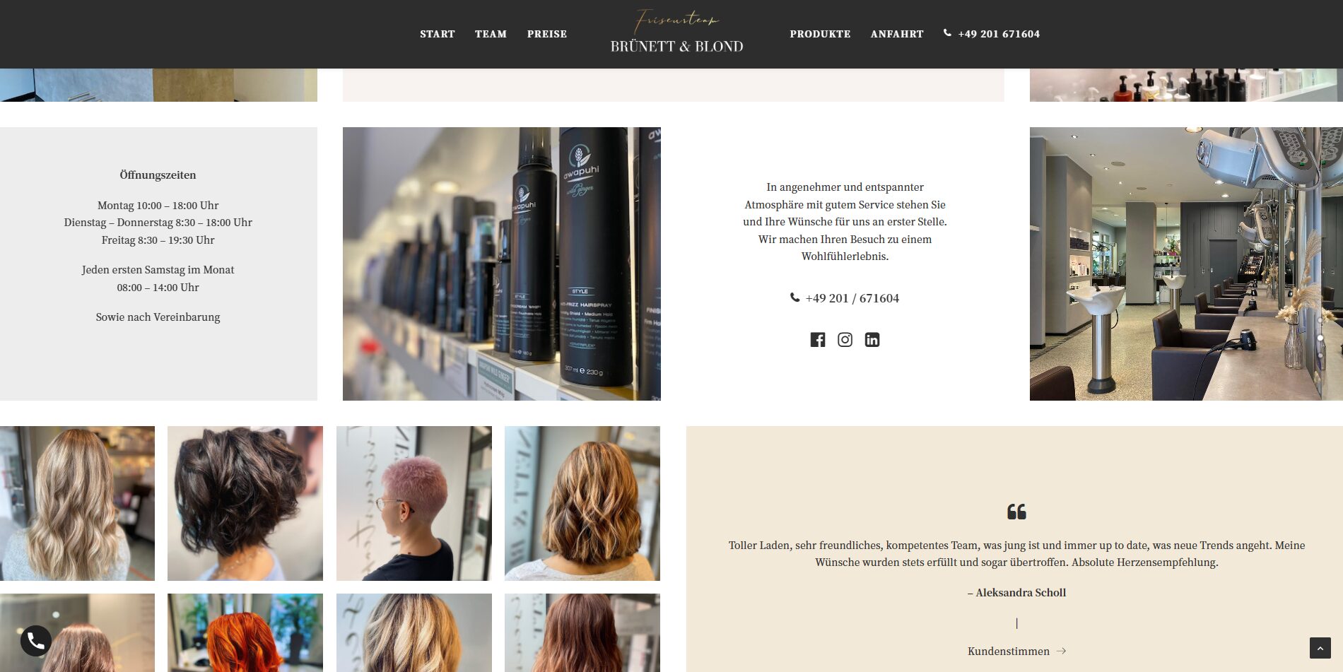 Für das Friseurteam Brünett & Blond in Essen haben wir eine moderne Website erstellt, die den stilvollen Charakter des Salons widerspiegelt. Die Seite überzeugt mit einem klaren, eleganten Design und benutzerfreundlicher Struktur.