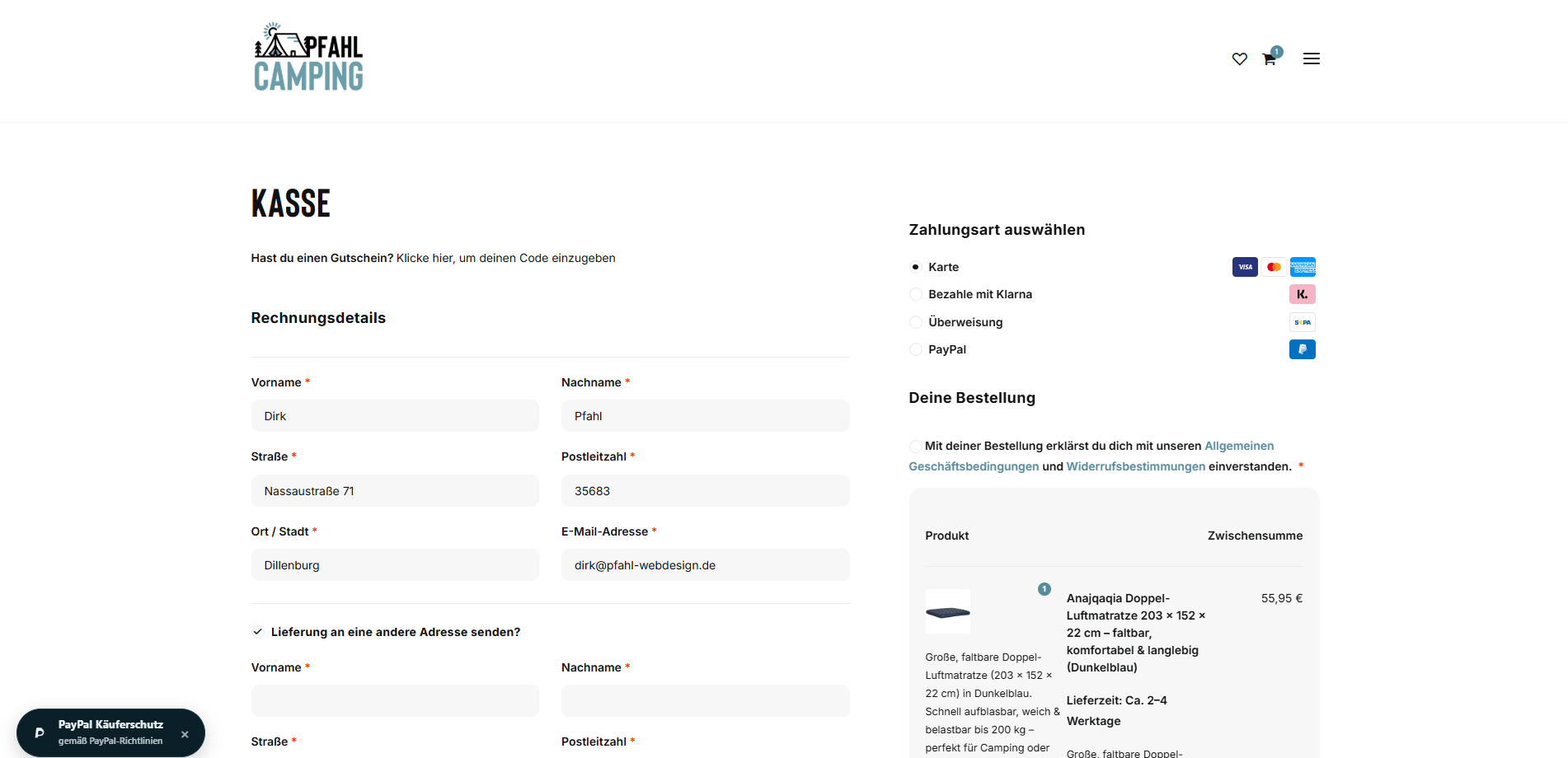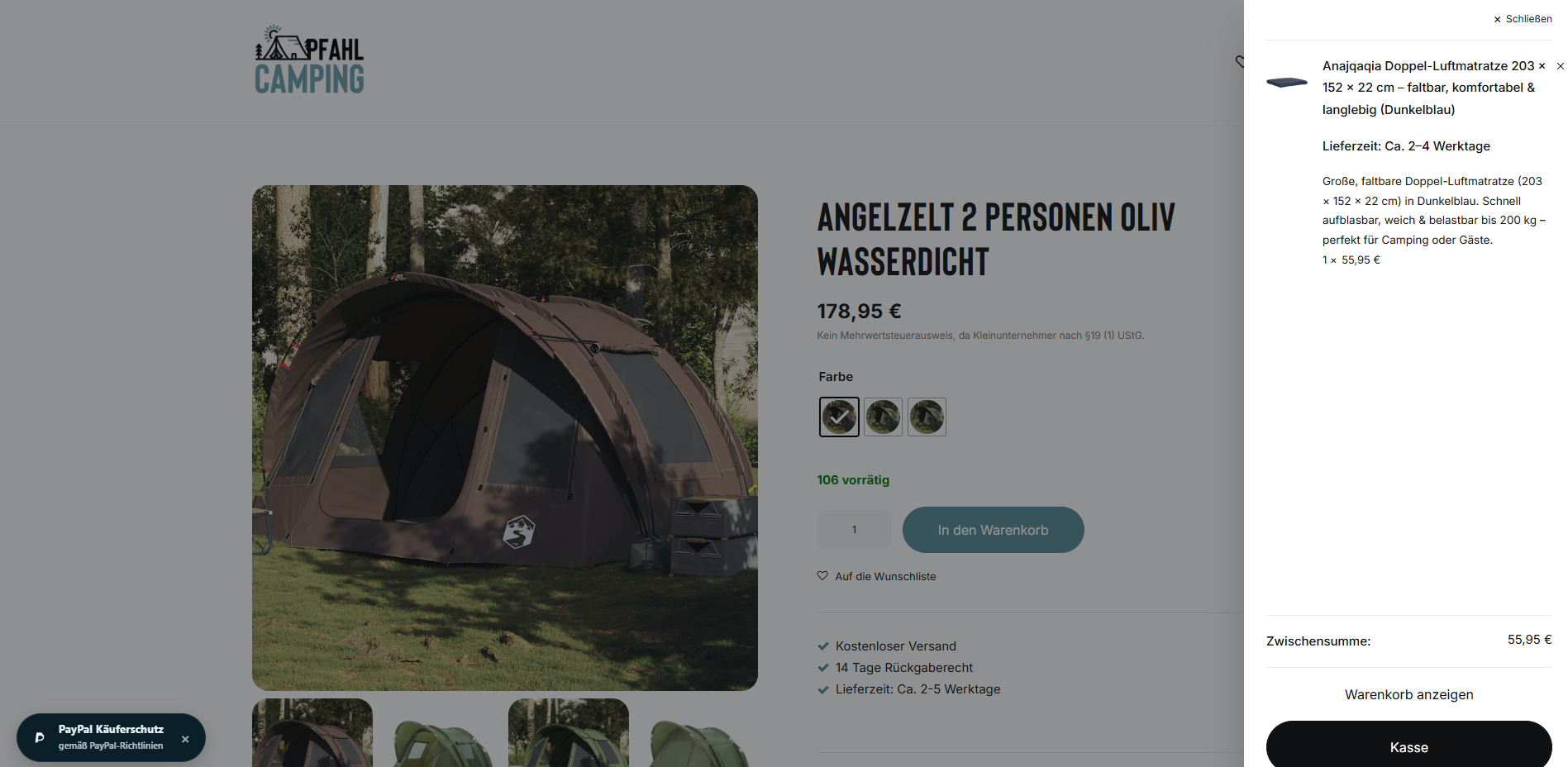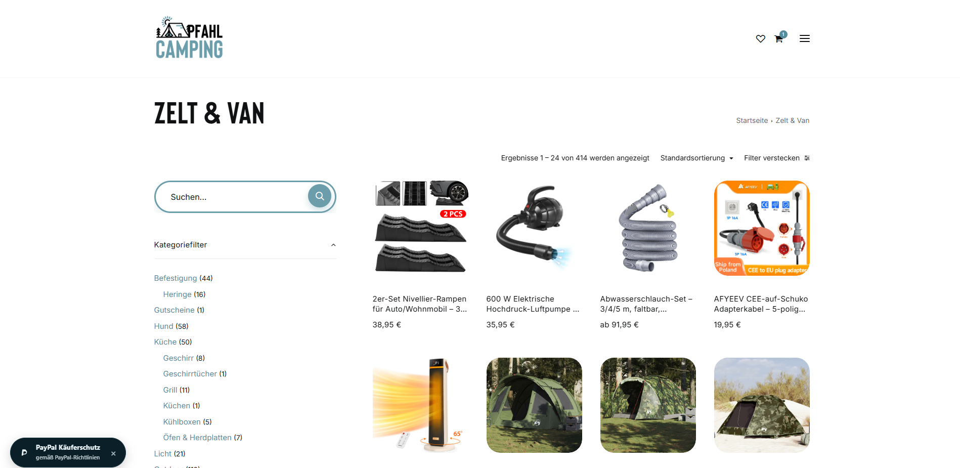 Mit Pfahl Camping betreiben wir unseren eigenen Onlineshop für hochwertiges Camping- und Van-Zubehör – persönlich getestet, liebevoll präsentiert und mit einem klaren Fokus auf Nutzerfreundlichkeit und Vertrauen.