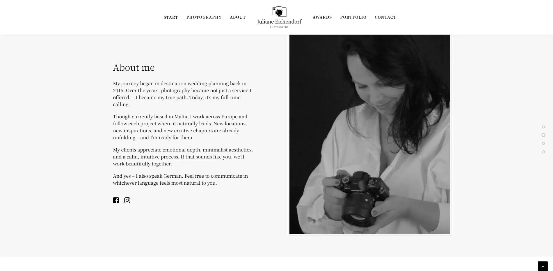 Für Juliane Eichendorf Photography haben wir eine mehrsprachige Website erstellt, die sowohl auf Englisch als auch Deutsch verfügbar ist, um internationale Kunden bestmöglich anzusprechen.