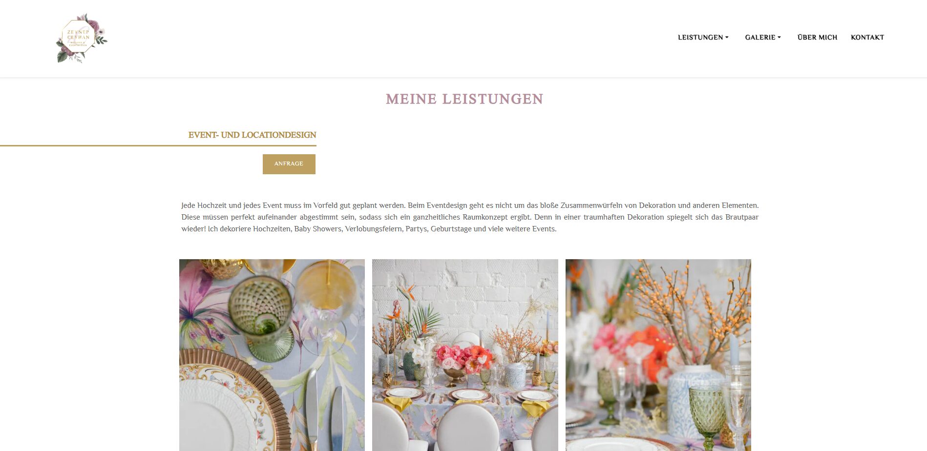 Die moderne WordPress-Website überzeugt mit einer ansprechenden Galerie, in der eindrucksvolle Hochzeitsmomente präsentiert werden. Ergänzt wird die Online-Präsenz durch individuell gestaltete Visitenkarten und Flyer, die Zeyneps Markenauftritt abrunden.